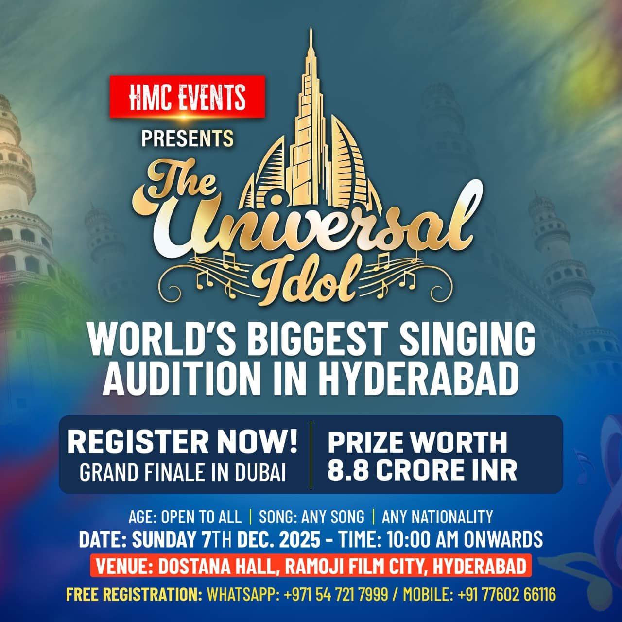 Experience the world’s most prestigious singing competition with a grand finale in Dubai and prizes worth ₹8.8 Crore